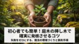 また、2〜3年に一度は「植え替え」という作業が必須になります。鉢の中で根がギュウギュウに詰まる「根詰まり」を起こすと、水を吸い上げられなくなって葉が茶色く枯れてしまいます。春先の気候の良い時期に、一回り大きな鉢に新しいフカフカの土(赤玉土7:腐葉土3)で植え替えてあげましょう。この時、黒く傷んだ古い根はハサミで少し整理してあげると、若々しい根の成長が促されますよ。初心者でも簡単!庭木の挿し木で確実に発根させるコツを解説の記事でも触れていますが、土の物理性を良くすることが鉢植え成功の絶対条件です。